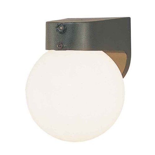 Ballast:Preheat Ballast, Finish:Black, Glass:White Acrylic, Light Bulb:(1)7w Twin Tube G23 CFL Fluorescent outdoor wall sconce with Dusk to Dawn Eye.