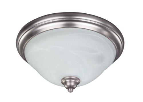 CANARM LTD. Style Michael 2-bulb Flush Mount Light. This Michael collection 2-bulb, dome style, flush mount light by Canarm LTD. is a welcomed addition to any room. A great look for kitchen lighting or dining rooms. Features a brushed pewter finish with alabaster glass. The sophisticated styling adds grace and elegance to your decor. Uses 2 60-Watt bulbs, type A19. (Not included) Height 7-Inch Width 13-3/4-Inch Limited Lifetime Warranty. Canarm has a long and successful history of supplying lighting and ceiling fans. They work diligently to create a comprehensive selection of styles and designs as well as maintaining high standards of product quality and value.