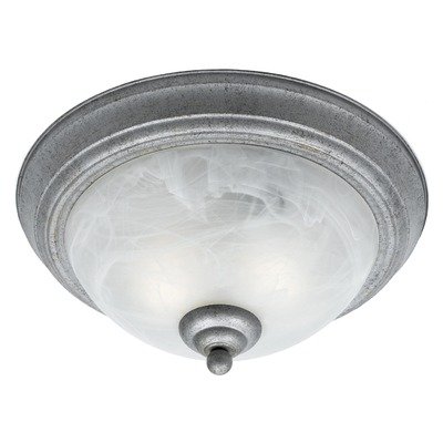 Triarch International 33286-OS Value Series 280 2 light flushmount in an old silver finish with white swirl alabaster glass shades old silver white swirl alabaster glass shades 2-60 watt medium base bulbs. Not included UL Approved