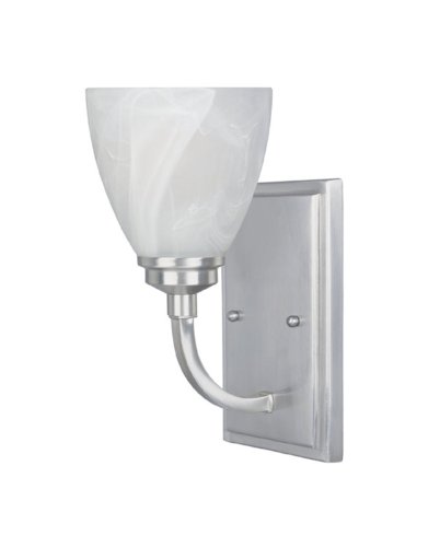 Designers Fountain 82901-SP Tackwood Collection 1-Light Wall Sconce features an elegant Satin Platinum finish and complementing Alabaster glass in a transitional design sure to enhance any decor for years to come with the classic lines. Hang on either side of a vanity mirror for a touch of charm, or in an entry or hallway for a classic statement. The 82901-SP is 5-Inch wide x 10.5-Inch high x 6.25 inch extension. The fixture requires one 100-Watt medium base incandescent bulb (not included), dimmable using a standard incandescent dimmer. The 82901-SP comes one per package. Designers Fountain has been a leading manufacturer and distributor of decorative and functional residential lighting the United States since 1985. Headquartered in a state-of-the-art facility in the Los Angeles area, our products are available through a network of authorized lighting showrooms, distributors and internet experts throughout North America. Our philosophy is to continue to provide the highest quality products to meet all your lighting needs. Whether you are searching for traditional, transitional or contemporary styling, the breadth of our product line allows you to indulge your creative instincts at an affordable price.