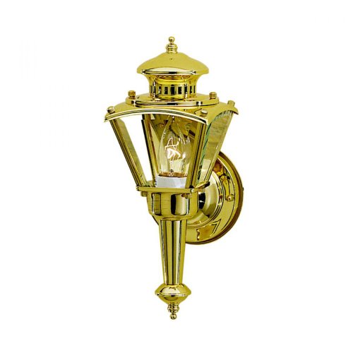 Bulb Not Included The one light New Street Wall Lantern features a classic profile, polished solid brass construction, and clear beveled glass panels. It uses a 60-watt (max) bulb, measures 13" high, and is U. L. listed for wet location.