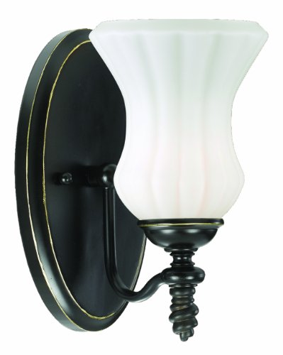 19399-010 Features: -One light wall sconce.-Opal white shade.-cULus certified.-Bulb base: E26. Color/Finish: -Oil rubbed bronze finish. Specifications: -Accommodates (1) 60W A19 incandescent bulb (not included).-120 Volts. Dimensions: -Overall dimensions: 8.5'' H x 6'' W x 7'' D. Collection: -Amesbury collection.