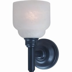 The Carlton Collection's one light bathroom vanity creates a comforting ambiance of light. The architectural bronze finish coupled with the white alabaster glass shade is open and airy in design. Includes 8-Inch of wire. This light extends 7-Inch. This fixture requires 1-medium 60-Watt maximum bulb. UL listed for damp locations. Royce Lighting, Elegance for America's Homes.