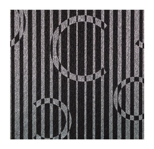 Variegated black and gold fibrous stripe with large monogram effect embedded within the pattern in an inverse letter C-Inch. Made in the China.