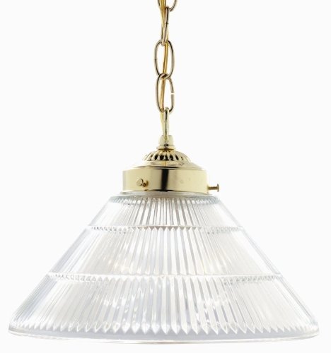 Polished brass 12-inch prismatic pendant with clear ribbed glass. (1) 100-Watt A19 medium base bulb not included.